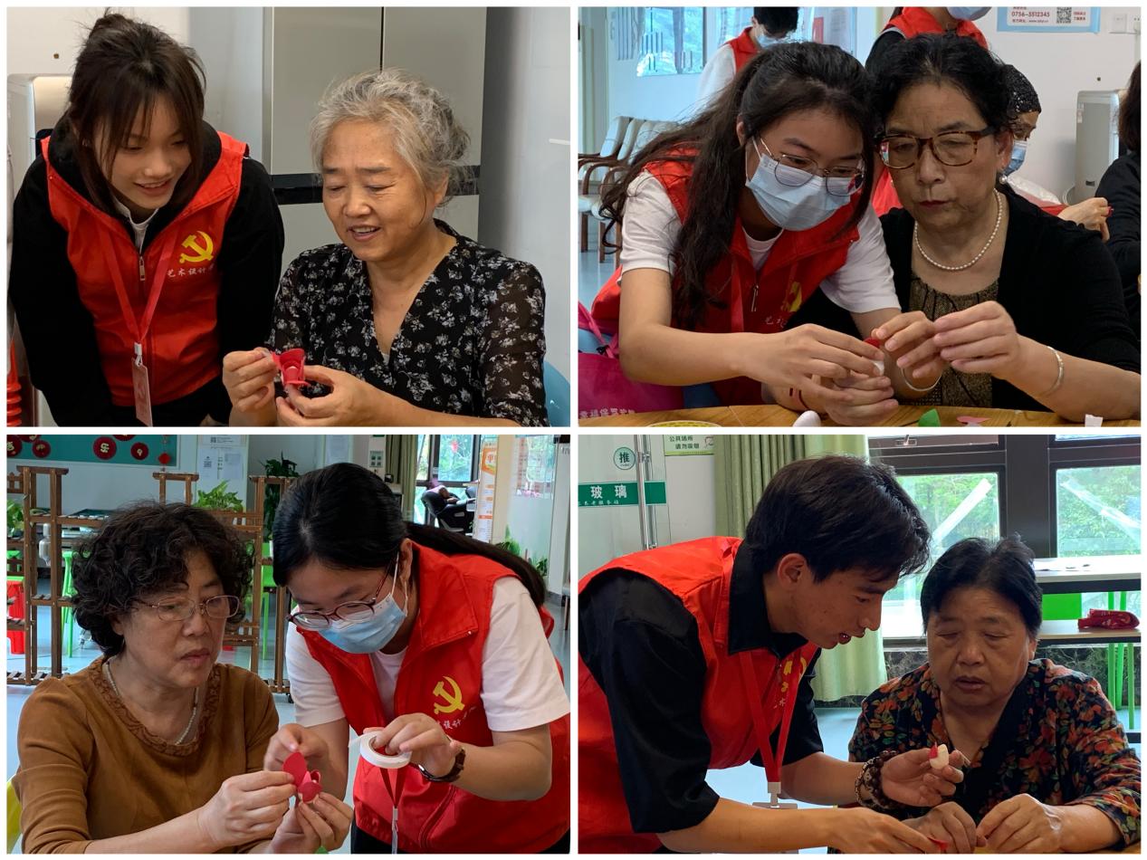 活动开始前艺术设计学院的党员志愿者们精心布置了场地,为各位长者的到来做好充分的准备。活动开始,主持人向长者们介绍本次活动目的、流程以及如何制作玫瑰花的步骤等,让各位长者对此活动有了更深入的了解。