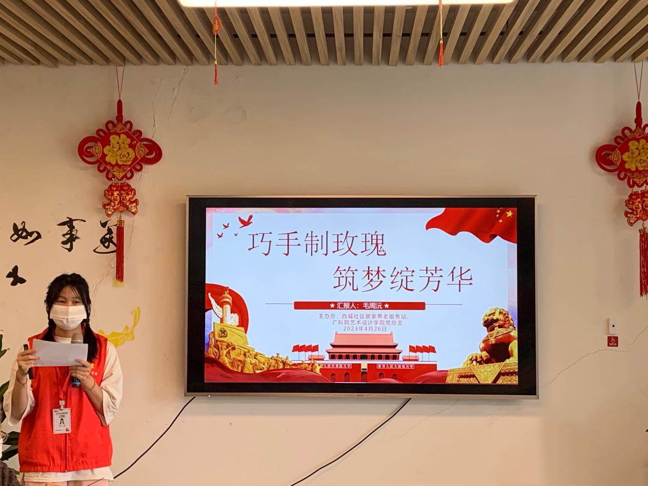 本站讯 为了促进社区长者们的身心健康,提高长者们的幸福感,帮助长者建立开心、积极向上的心态。2023年4月26号下午,广东科学技术职业学院艺术设计学院党总支走进西城社区开展“巧手制玫瑰,筑梦绽芳华”手工课教学活动。