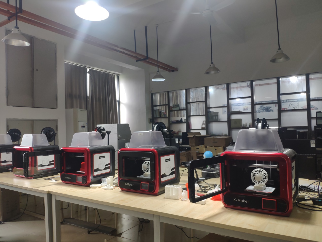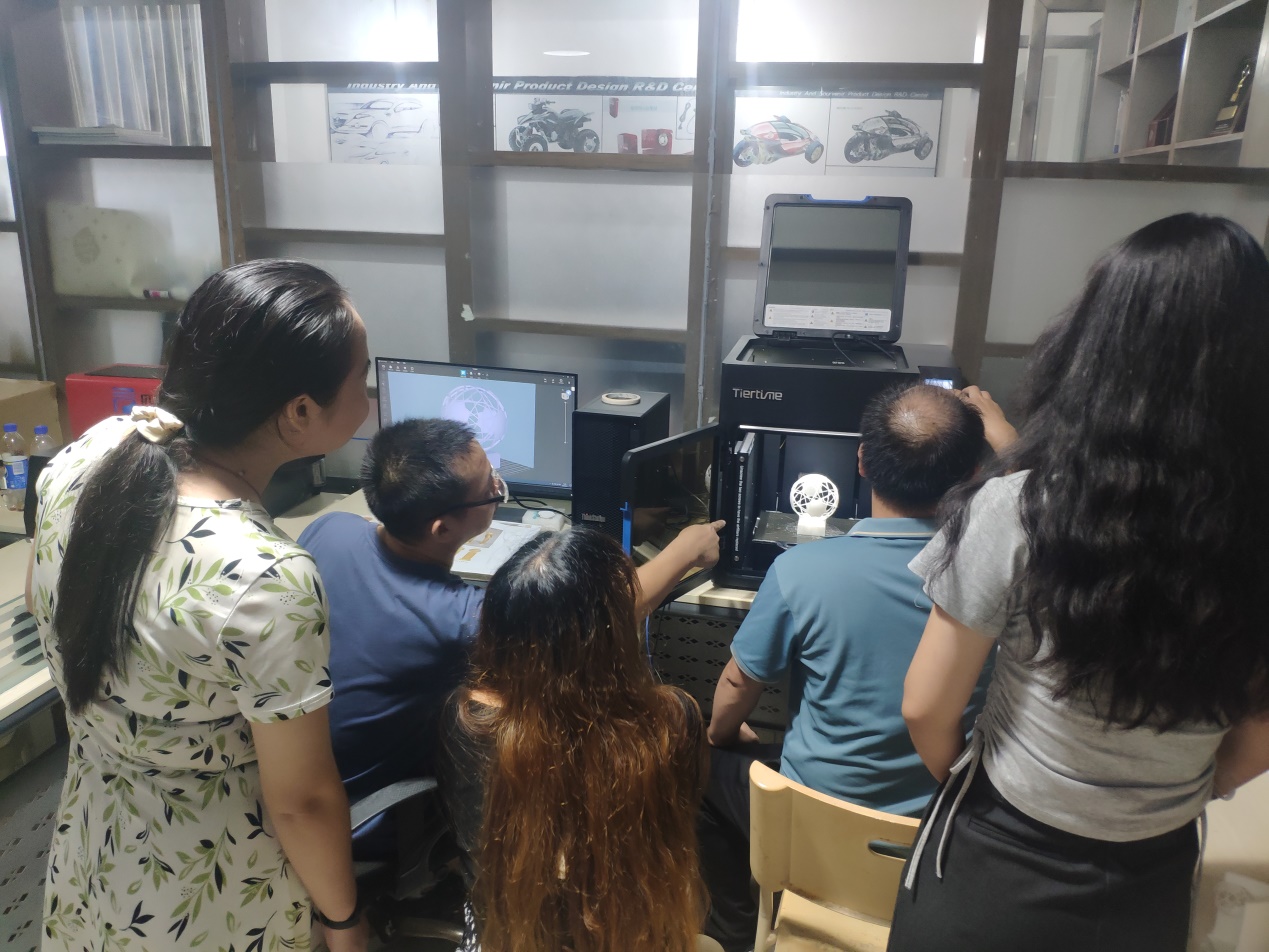 陈鹏、谭素龙、向文元老师与学生们共同探讨3D打印方案