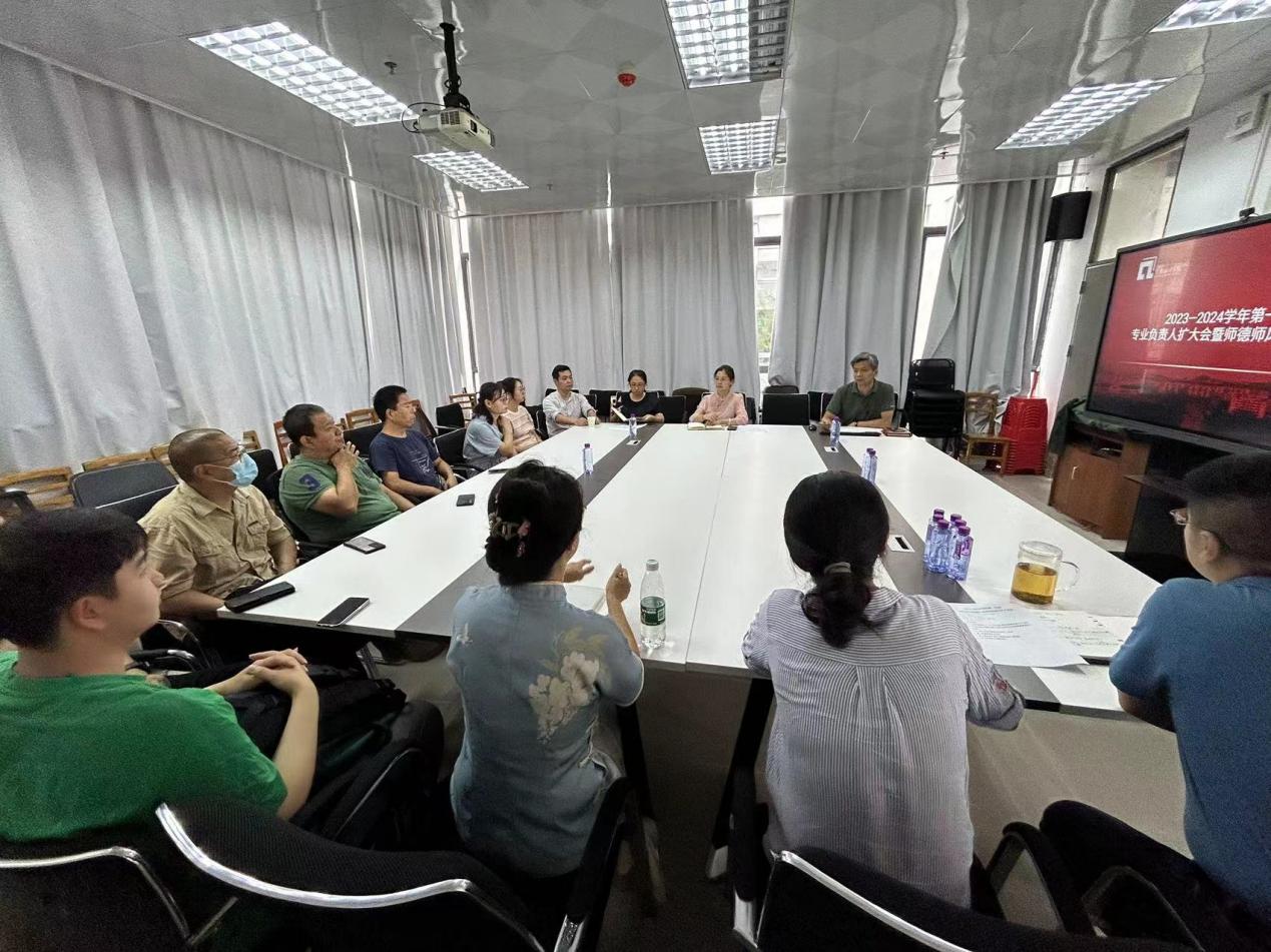 本站讯  1025日下午,艺术设计学院在学校图书馆7710会议厅召开2023-2024学年第一学期第一次专业负责人扩大会议暨师德师风专题学习会,研究部署学院师德集中学习教育和专业建设等重点工作。学院党政班子成员、各专业负责人及办公室成员参加会议。会议由学院院长沈鸿才主持。