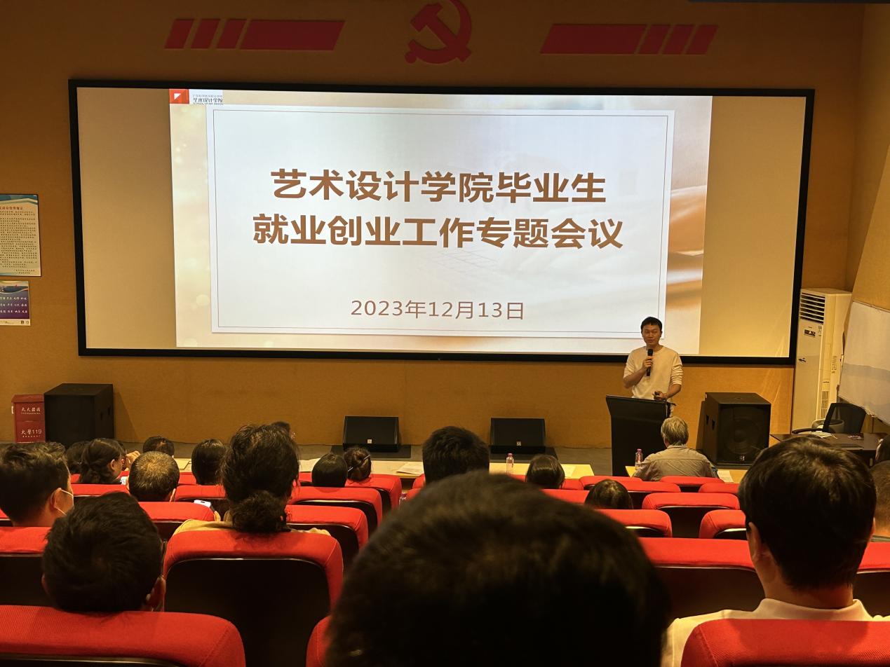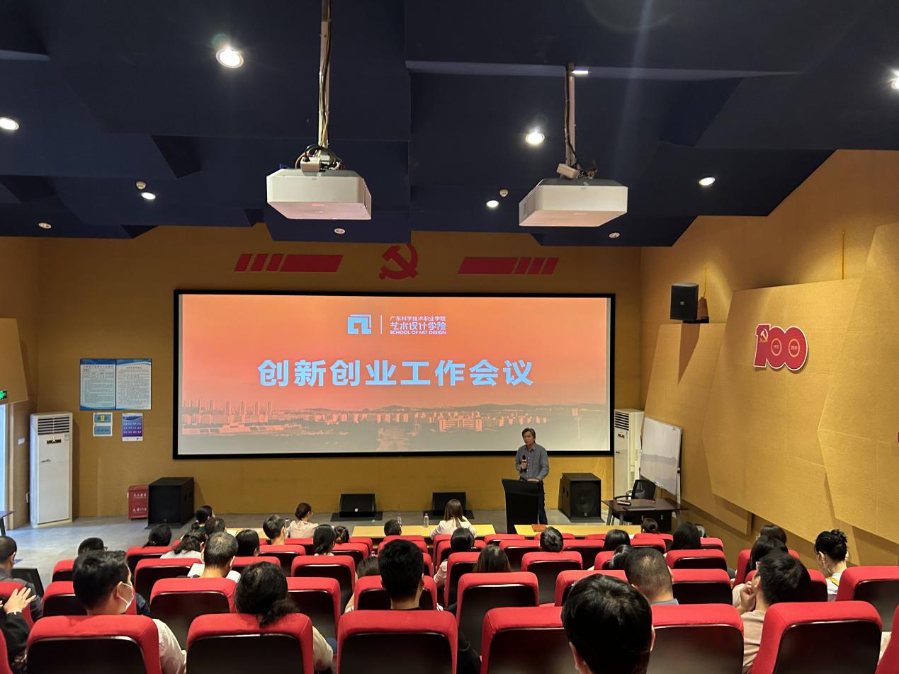 本站讯 12月13日,艺术设计学院在实训室105召开创新创业工作专题会议,广东就业促进协会常务副会长向丹阳、创新创业学院副院长秦雯莅临指导,学院全体教职工参加会议。会议由学院院长沈鸿才主持。