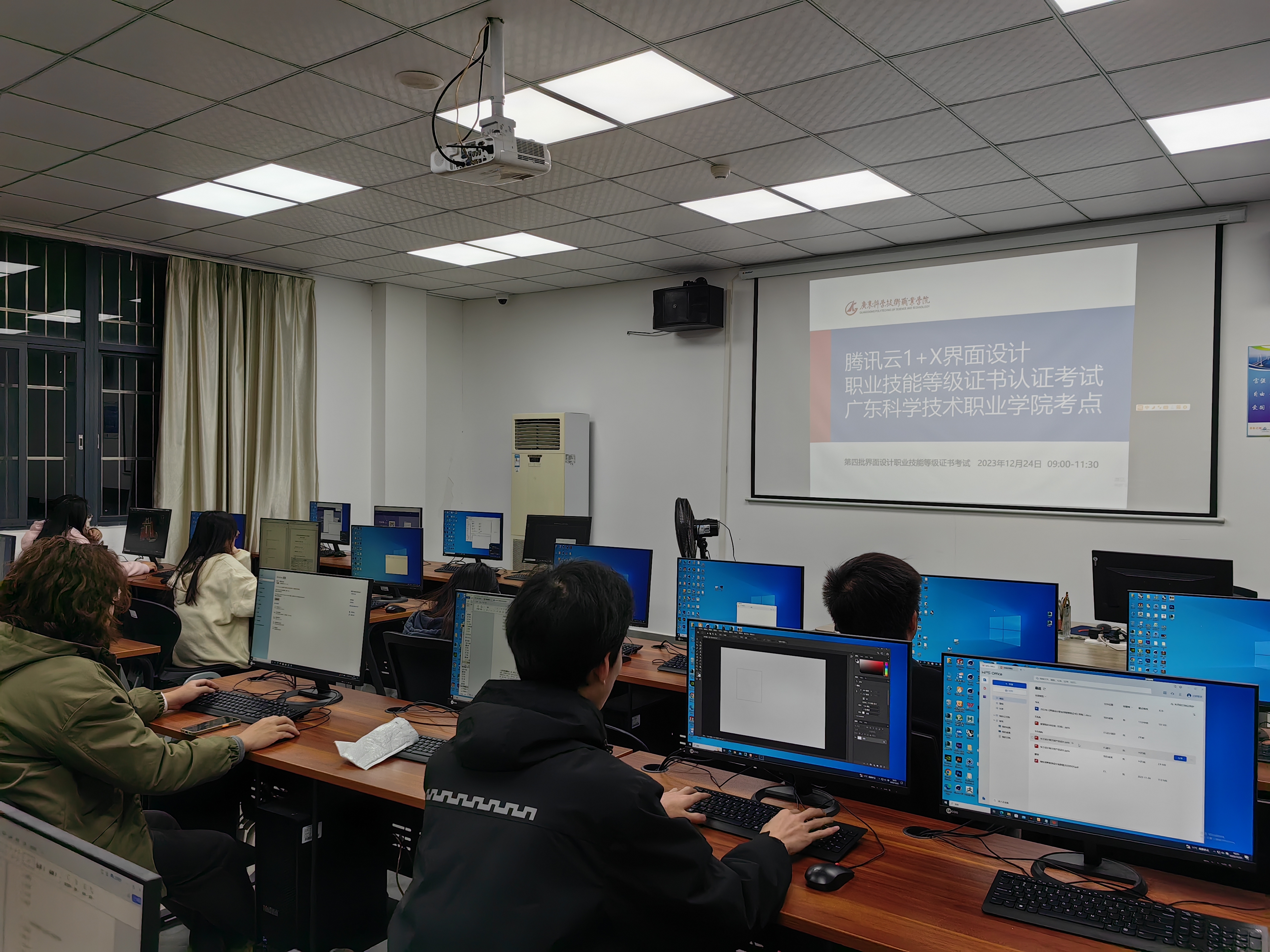本站讯 2023年12月24日,艺术设计学院在实训楼9-110顺利完成了2023年第四批腾讯云“1+X”界面设计职业技能等级证书(高级)考试,艺术设计专业20名学生参加了此次1+X证书认证考试。