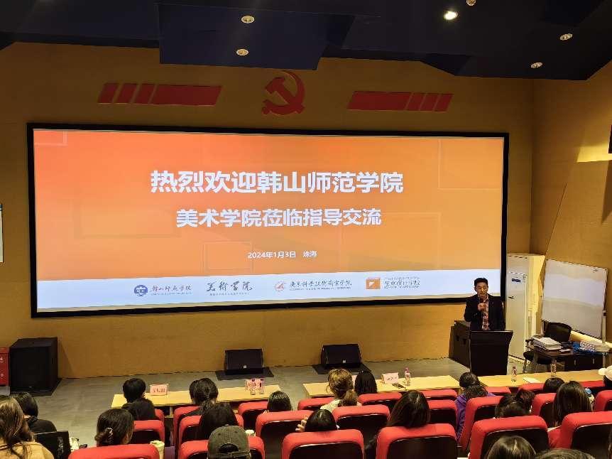 本站讯 202413日,2024届韩范学院—广学技术职业学院高本协同育人联合培养本科班毕业设计及就业指导专题会议在艺术设计学院在实训九红色演播厅召开。韩山师范学院美术学院院长刘剑钊、副院长杜延一行5人赴我院开展交流和指导,艺术设计学院院长沈鸿才、副院长曹春晓,艺术设计专业负责人、专任教师、班主任以及2024届全体毕业生参会,会议由沈鸿才院长主持。