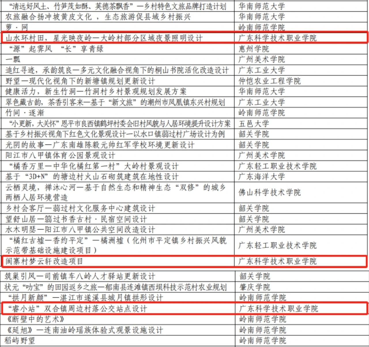 本站讯 近日,由广东省自然资源厅、教育厅、住房城乡建设厅、农业农村厅共同主办,广东省国土空间规划协会、广东省“双百行动”乡村建设规划高校联盟承办的2023年度“粤美乡村”风貌设计大赛获奖名单公布。我校3项参赛作品获得高校组三等奖,艺术设计学院师生作品荣获高校组三等奖1项。