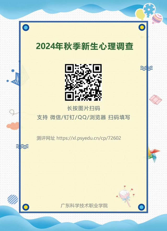 接学校心理中心通知,为增强学生的心理健康意识,全面了解学生的整体的心理状况,有效预防学生心理危机事件发生,切实保障广大学生的生命安全和身体健康,维护校园的安全稳定,根据教育部要求和学校工作安排,现对24级在校学生进行心理普查,具体安排如下: