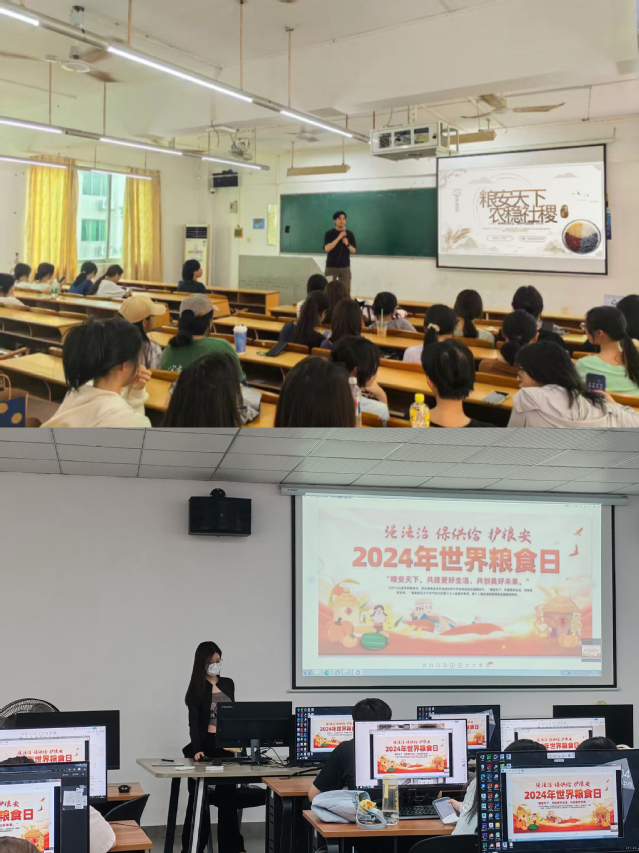 10月12日至10月15日,我院各班级依次开展了以“强法治保 供给护粮安”为题的主题班会。班会伊始,各班通过图片、视频、分享体会等形式,向同学们介绍了世界粮食日的由来、意义以及当前全球粮食安全形势。接着,各班班长带领同学们学习“文明餐桌公约”及《中华人民共和国反食品浪费法》,让同学们对文明用餐的规范和反对食品浪费的法律要求有了清晰的认识。在班会上,同学们积极发言,分享自己对节约粮食的认识和体会,并纷纷表示要从自身做起,珍惜每一粒粮食,尊重劳动者,珍视农民的劳动成果。最后,班主任进行班会总结,强调了节约粮食是中华民族的传统美德,也是每个人应尽的责任和义务。