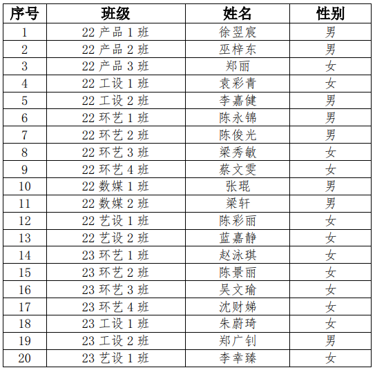 根据《关于召开广东科学技术职业学院艺术设计学院第十一次学生代表大会的请示》要求,秉持实事求是、公平公正,经个人申报、团支部推荐、学院团委讨论,决定拟推选为广东科学技术职业学院艺术设计学院第十一次学生代表大会正式代表如下: