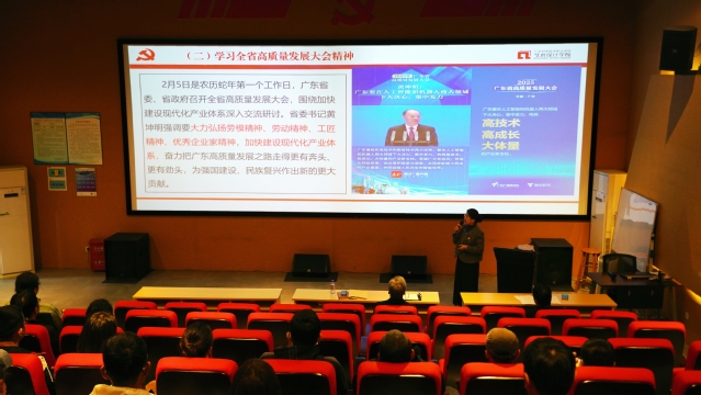 本站讯 223日上午,艺术设计学院在实训九105红色演播厅召开党总支理论学习中心组(扩大)学习会暨新学期全院教职工大会。学院党政班子成员、全体教职工参加会议。会议由学院副院长曹春晓主持。