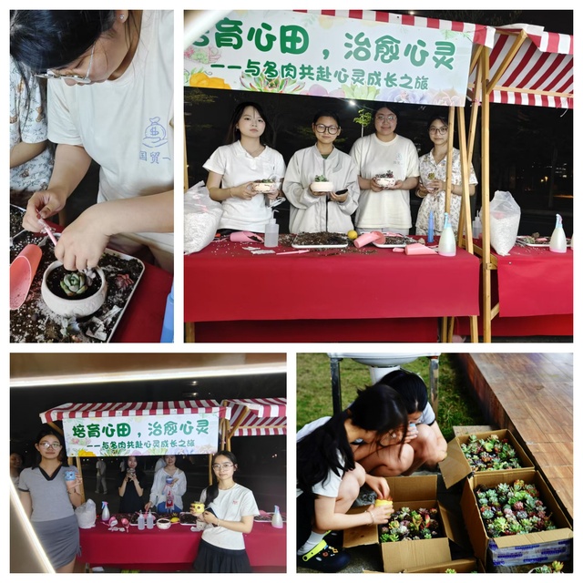 本站讯 为丰富心理健康教育形式,引导学生关注自我成长,艺术设计学院馨语心协和美育工作室于3月28日在创意集市举办“培育心田,治愈心灵——与多肉共赴心灵成长之旅”主题活动。活动将园艺疗法与心理健康教育创新结合,让学生在培育多肉的过程中感受生命的力量,学会自我关怀,活动吸引了来自各院系300余名学生热情参与。