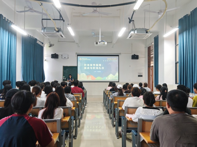 本站讯 为积极应对就业市场的变化,助力学生顺利迈入职场新征程,艺术设计学院于521日在教学楼四104教室举办了主题为“职场首秀指南:面试与职场礼仪”的专题讲座。本次讲座邀请珠海市职业训练指导服务中心资深讲师徐海燕主讲,吸引了百余名学生参与。