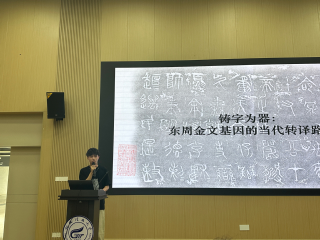 6月16日,吴云峰以“铸字为器:东周金文基因的当代转译路径”为题,呈现了一场深度学术讲座,聚焦其核心研究领域——字体设计的传统活化。讲座伊始,吴云峰勾勒了东周时期的社会风貌、思想潮流与工艺审美,为理解金文奠定了坚实的历史文化根基。随后,他独辟蹊径,从“物象”与“意境”两个核心维度,深入剖析了东周金文独特而精妙的设计美学。讲座的核心与亮点在于,吴云峰系统阐述了如何利用格律设计的方法将分析提炼出的东周金文“设计基因”运用到当代字体设计作品的创作实践中。他通过具体案例,生动展示了传统文字艺术在现代设计语境下的新生路径,为字体设计创新和传统文化资源的当代活化利用提供了极具价值的学术观点与实践范例,引发了在场师生对传统与创新关系的深度思考。