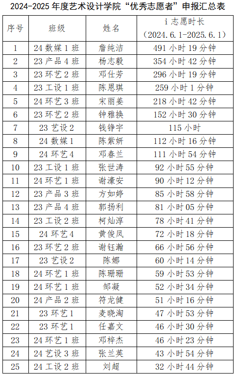 为深入学习宣传贯彻习近平总书记关于志愿服务工作系列重要指示精神,进一步弘扬“奉献、友爱、互助、进步”的志愿服务精神,根据《关于评选2024-2025年度艺术设计学院优秀志愿者的通知》。按照公平、公正、公开的原则开展评选工作。
