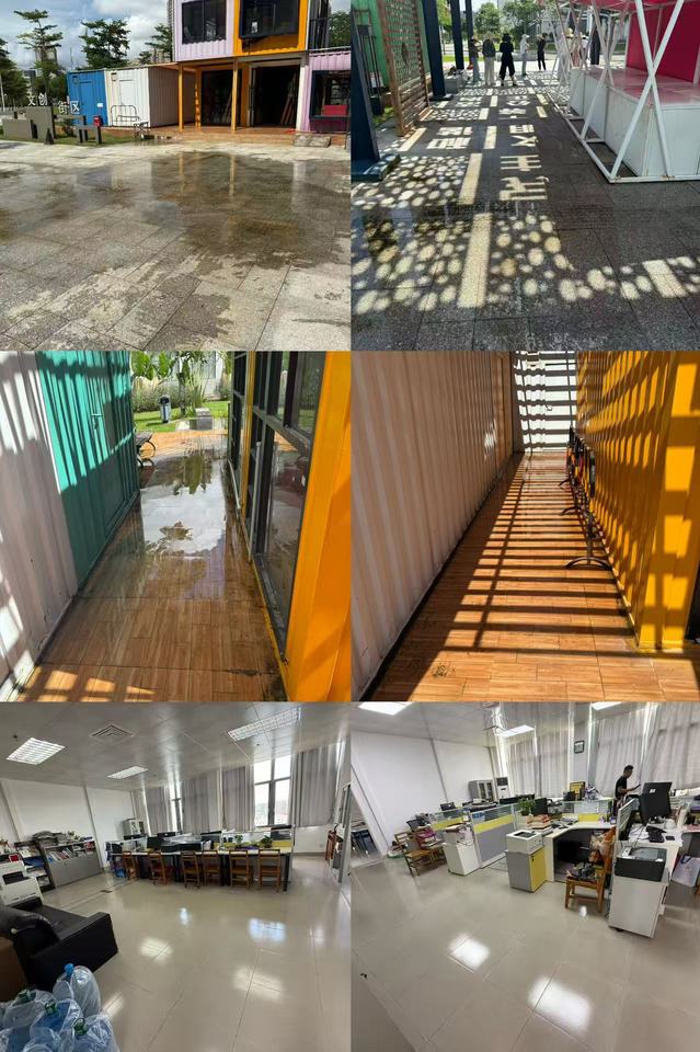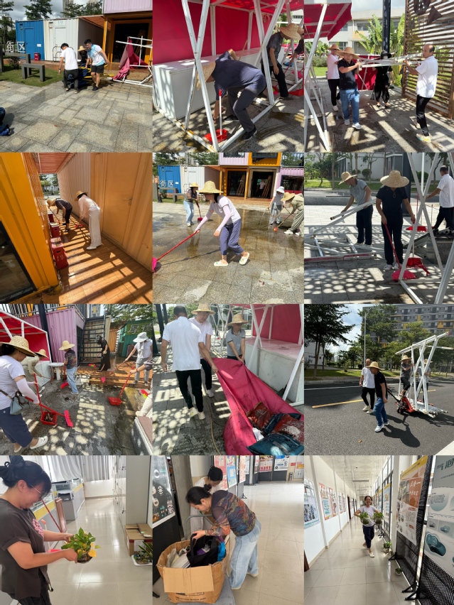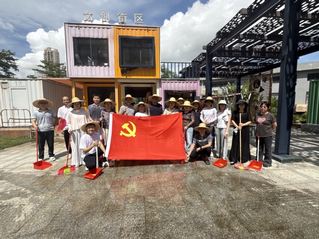 在文创街区清理现场,党员教师们在炎炎烈日下戴上草帽,拿起铁锹、扫帚等工具,对杂物、落叶和杂草进行彻底清理,对地面积水进行清扫疏通,切断蚊虫孳生链条。在各实训室和图书馆办公区域,大家重点对各工作室、办公室、楼道、走廊等开展清扫,有的弯腰清理堆积的杂物与生活垃圾,有的用抹布擦拭窗台积尘,同时仔细清扫地面缝隙,确保无垃圾堆放、地面干燥无积水;在清除闲置积水容器方面,教师们逐处排查易积水点位——室内检查花瓶水位、水培植物根系积水情况,及时更换清水并清理枯枝;室外则对闲置的水桶、花盆托盘逐一检查,倾倒积水后将容器倒置存放,彻底切断蚊虫孳生链条。党员教师们对各类卫生死角进行了彻底清理,尤其对易滋生蚊虫的积水区域实施重点整治,有效清除了蚊媒滋生环境。