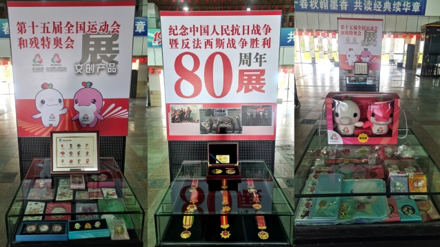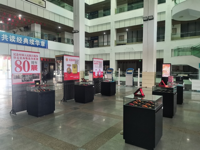 本站讯 近日,为纪念中国人民抗日战争暨世界反法西斯战争胜利80周年,由我校艺术设计学院与珠海金辉礼饰纪念品有限公司联合主办的“抗日战争暨世界反法西斯战争胜利80周年纪念证章展”与“第十五届全国运动会文创产品展”在我校图书馆正式开幕。本次展览以“铭记历史、致敬荣光、拥抱运动、共创未来”为主题,面向全校师生开放。