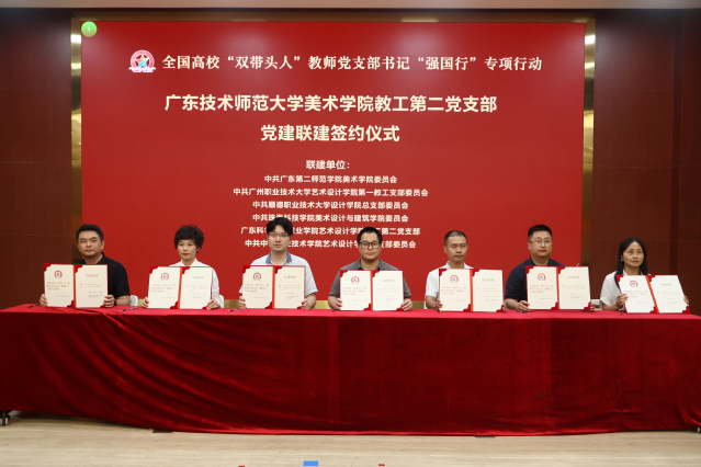 峰会现场举行了首批联建单位签约仪式。广东技术师范大学与广东科学技术职业学院等20家单位作为代表签署联建协议。未来,联建单位将围绕“支部品牌建设”“职普融通研究”“设计赋能产业”三大维度展开合作,具体包括共建“强国行”团队、共研课程标准、共推设计服务下沉产业等多个项目。